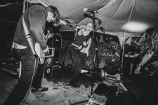 16.08. SpotJam bei Bautzen mit JACKE SCHWARZ, TEMREVA und JAMALURA. Ich verweile so zwischen 20 und 24 Uhr und sehe immerhin 3 Bands. Die Dresdner Garagenrocker JAMALURA spielen zuerst den Konzertraum leer und zum Ende hin bei schnelleren Songs wieder voll. Danach TEMREVA, die ich hier bei ihrem ersten Auftritt schon gesehen habe. Und meine Güte: Die haben einen enormen Sprung gemacht. Das ist jetzt echt guter Black Metal geworden, wobei es auch irgendwie witzig ist, wenn die Drummerin am Dauergrinsen bei der düsteren Musik ist. JACKE SCHWARZ (im Bild) ist am Anfang etwas lahm und wird dann immer schneller und besser. Sound ist für den Veranstaltungsort überragend und auch das selbstgebraute Spotbräu schmeckt überragend. Hat gelohnt.
