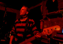 Wir machen dann wieder den Resteputzer. Während des ersten Songs steht dann plötzlich eine Dame in Bademantel im Raum und brüllt uns an. Ist wohl die Nachbarin, die keinen Bock auf solch illustres Gesocks hat. Ich hab es gar nicht mitbekommen, Husi hat sie dann in irgendeiner Form grumpy gekontert und wir ziehen ja sowieso einfach unseren Stiefel durch. Oi it's asozialen Rock!