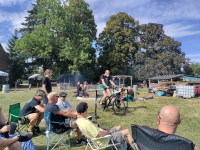 Nach einem Jahr Pause heißt es für mich wieder: Willkommen Gahro, wo jedes Grundstück einen ordentlichen Haufen hat. Manche sogar 2 oder 3. Ab und zu wächst ein Kürbis drauf. Dieser Haufen hier wächst hier langsam zu. Wir verpassen derweil PUMMELFEE & DIE PULLERBLUMEN, die ihren ersten Auftritt hatten. Auf Nachfrage schien das gut dadaistisch gewesen zu sein und die Meinungen gingen weiter auseinander als die Augen von Yvonne Catterfeld. Es gab wohl auch eine Art Rennen mit Kinderautos! Eine Pullerblume bescheinigt am Bierstand, dass der Auftritt fantastisch gewesen sein muss.