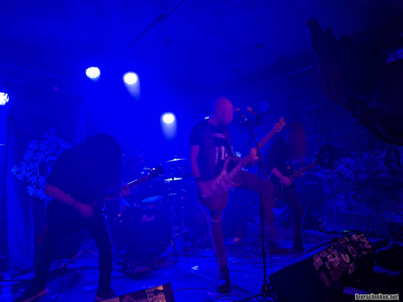 Der Sound bei Jade ist dichter, professioneller als bei der ersten Band. Eigentlich zu dritt unterwegs, sind sie mit Live-Gitarist "Wildman" - sonst Kopf der spanischen Atmo-Doomer TodoMal - zum Quartett angewachsen. Die zwei Gitarren sorgen für breite Soundwände, und Drummer "B." (a.k.a. Lord Bud) haut mit der Doppel-Fußmaschine auch mal ein paar fette Blastbeats raus.