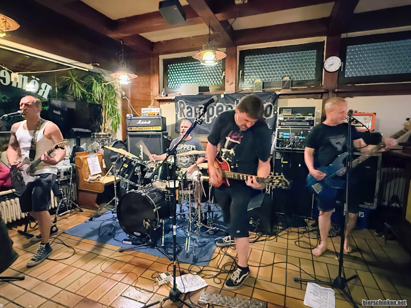 fehlnavigiert: Mit reichlich Verspätung beginnen RAMPENBÜRO ihr Set. Um den Zeitplan nicht zu crashen, ist es halt nur halb so lang. Aber völlig egal, denn die beiden Bands wechseln sich im 60min-Takt ab. Wer eisern durchzieht, kann Rampenbüro heute mindestens 3x erleben! Rampenbüro wie gewohnt mit liebgewonnenen Rumpeldeutschpunk und echt wilder Lautstärke im kleinen Römerfässle.