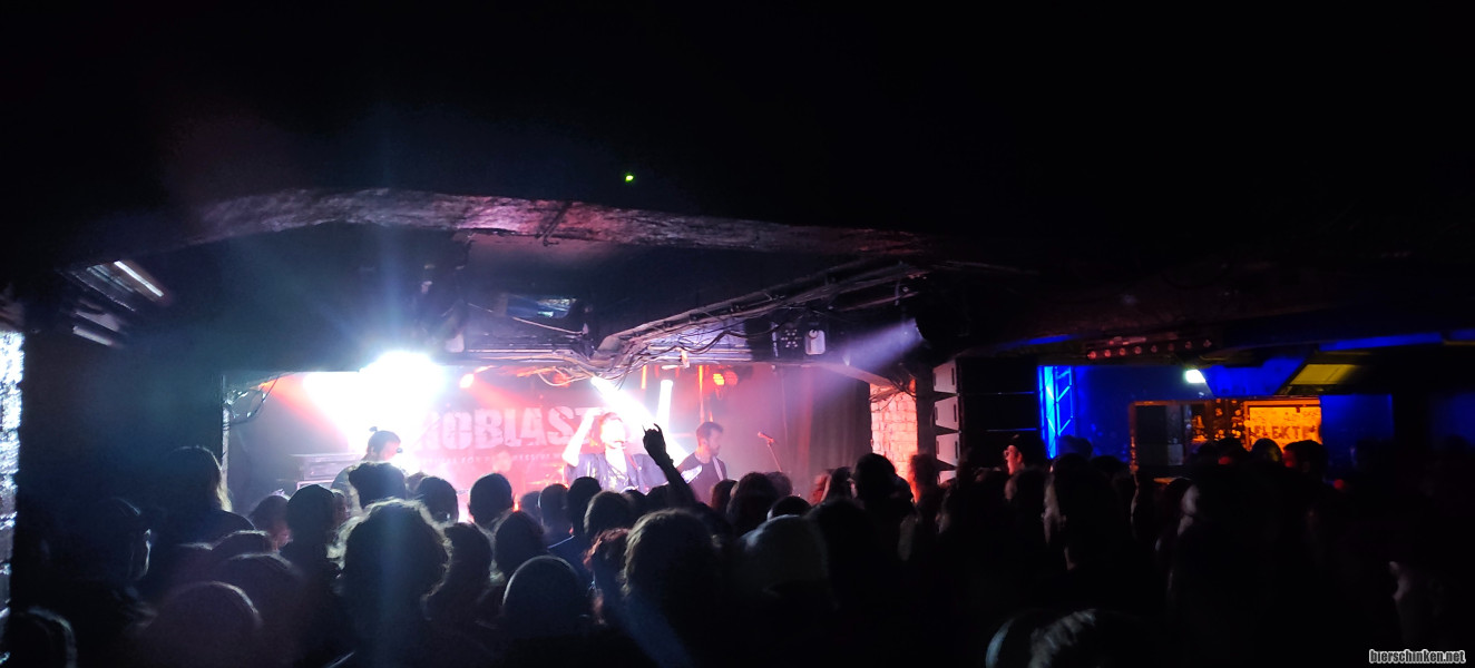Danach geht's runter in den Keller, da gibt es ROYAL SORROW sehen. Es ist eng und voll, und ich merke recht schnell, dass ich hier falsch bin. Die Musik ist irgendwo zwischen Metalcore und Schlager, ich muss an Ronnie James Dio denken, und auch an "The Voice", denn das Ganze wird auch noch theatralisch inszeniert. Pop-Metalcore in harmonisch Moll scheint in den vorderen Reihen gut anzukommen, für mich ist das alles gar nix.
