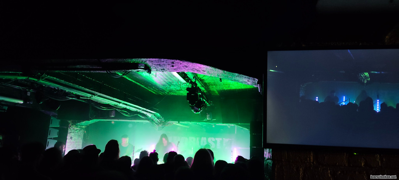 Wir schauen danach im Keller bei DISTANT DREAM vorbei. Bemerkenswert ist, dass auf den Säulen, die die Sicht auf die Bühne einschränken, Fernseher sind, auf denen man dann ungefähr genausowenig sieht, wie auch von ähnlicher Position neben der Säule - der Wille zählt! Musikalisch fällt mir auf, dass die Songs eigentlich immer nur drei Akkorde haben - eigentlich ja ganz sympathisch, aber irgendwie passiert mir hier zu wenig, ich gehe irgendwann raus.