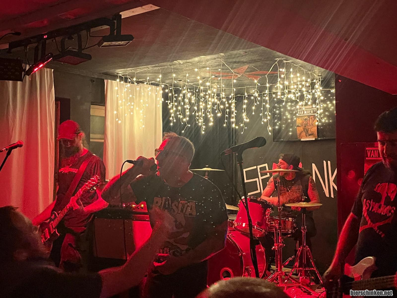 Härp: 14.09. Tobi veranstaltet mal wieder ein Konzert im Spunk in Gelsenkirchen und wir sind heute mit FOIAZOICHROIBA am Start. Einen echt guten Opener machen die SkaPunker von VAN BUREN, dann holzt Marc mit SPLINTERED ein überaus solides Set runter (heute allerdings ohne Bass) und nachdem wir durch - und komplett nass - die Bühne verlassen, dürfen GEISTIGE VERUNREINIGUNG ran und ein paar Hits rauskloppen. Schöner und sehr kurzweiliger Abend und obwohl parallel wohl drei Straßen weiter irgendeine Kneipennacht inklusive diverser Punkbands stattfindet, ist das Spunk ziemlich gut gefüllt. Kann man nicht meckern.