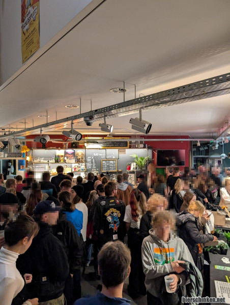 Bei meiner Ankunft im ausverkauften clubCANN ist schon mächtig was los. Es herrscht reger Ansturm auf die Bar, die darauf mit längeren Wartezeiten antwortet. Das Trinken verschiebe ich also auf die nächste Pause. Die Getränkepreise sind übrigens super fair.
