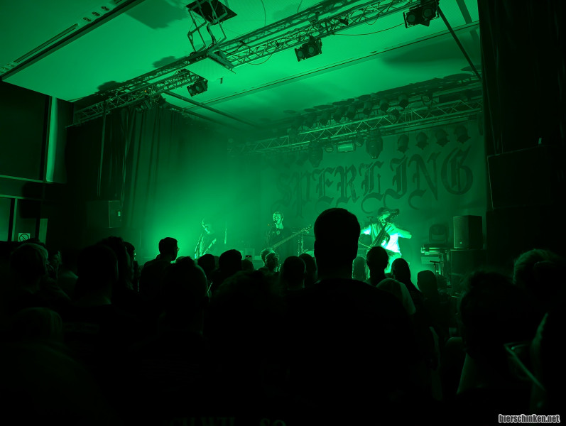 Gegen halb 10 beginnen Sperling mit Allein sein ist so leicht - klanglich ein sanfter, poppiger Einsteig. "Hunsrück Emo Est. 2014" ziert das Banner mit Blick an den Anfang. Doch mit der aktuellen Single Bitter richten sie die Scheinwerfer schnell ins Heute. Dabei kommt das charakteristische Cello, hier in der elektronischen Ausführung, gut zur Geltung.