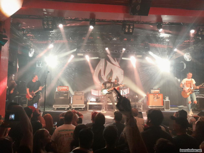 HOT WATER MUSIC liefern dann noch eine Stunde Dienst am Flanellhemdpunk (wobei ich nur eins im Publikum gesehen habe). Chuck tanzt, Chris zeigt seine Knie und die Rhythmusgruppe wobbert gut durch das Set. Ich kenne schon wieder erstaunlich wenig Songs, obwohl ich eigentlich alle Alben mal gehört haben sollte. Entweder spielen sie viel von der neuen Platte oder es liegt daran, dass ich sie oft auf langen Zugfahrten höre und dann einschlafe. "Remedy" am Anfang, "Trusty Chords" am Ende und mit Whitney Houston gehen die Saallichter an. Ausdauernde Zugaberufe werden konsequent ignoriert und ich bin früher wieder zu Hause als gedacht.