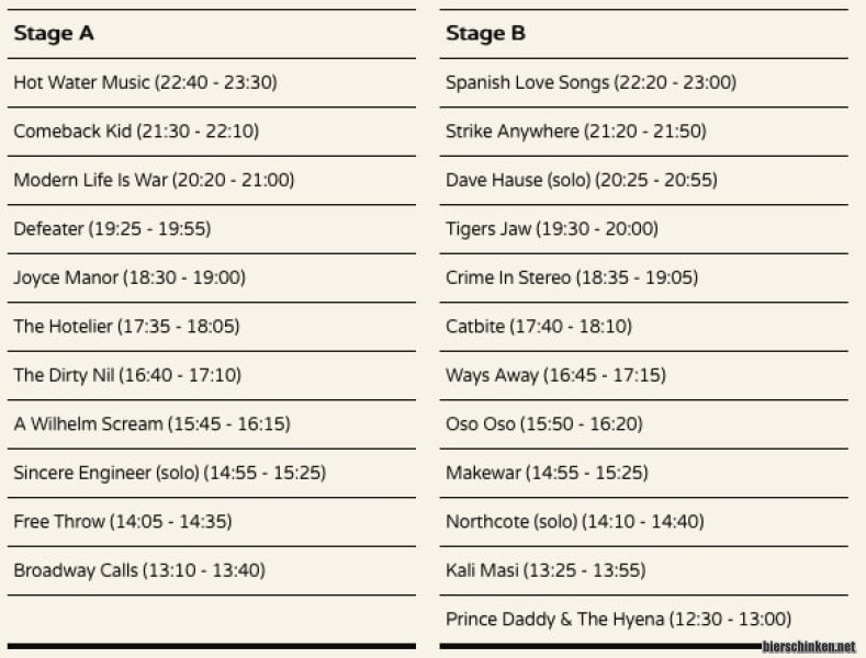 Auf der Hinfahrt dann die erste Ernüchterung: Das Ganze fängt entsprechend früh an, sodass wir die ersten Bands schon verpasst haben. Ist vielleicht auch sinnvoll bei dem Tagesprogramm. Dann spielen die meisten Bands nicht länger als eine halbe Stunde. Auch iwie logisch. Weniger verständlich ist die Taktung, dass sich die allermeisten Acts trotz zwei Hallen fast vollständig überlappen. Naja, ohne Kompromisse wird man wohl nicht durch den Tag kommen. Kompromiss Nr. 1: Ich nehme mir vor, pro Band nur ein Foto zu machen.