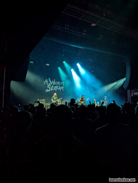 Zu A WILHELM SCREAM komme ich verspätet, weil mir die Band aus New Bedford bislang nicht nahe ging: zu technisch, zu melodiös für meinen Geschmack. Tatsächlich bessert sich mein Eindruck durch den Auftritt enorm: Spiel wie Gesang echt astrein und Unmengen Druck auf dem Kessel.