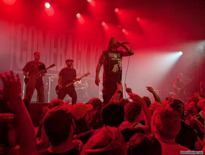 COMEBACK KID beeindrucken mich mittlerweile zum dritten Mal. Die Kanadier werfen alles in den Ring und lassen, getreu dem Motto "Break the silence, wake the dead", nicht locker bis die Bude am brennen ist und StagediverInnen kreuz und quer durch die Halle fliegen. Perfekt wie ich in der Einflugschneise stehe, werde ich von einem doppelt so kräftigen Kollegen im Landeanflug Crossbody-Style zu Boden getackelt. Uff, aber im Nachhinein wars lustig.