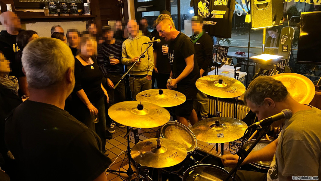 LöD: Zu Post-Punk passt die gelbe Lichtstimmung ganz hervorragend. Sorry, gab heut Clown zum Frühstück. Mir haben die Kanuten auch ausgezeichnet gefallen. Interessante Melodielinien und sehr coole Basslines unterstützt von einem unaufgeregten aber präsentem Schlagzeug. Und das hab ich nämlich ganz genau gesehen. Stand die ganze Show genau da von wo das Foto gemacht wurde!