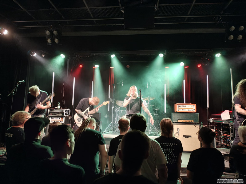Ich tröpfel zum Opener "Keine Erlösung" in den wie immer luftig gefüllten Konzertraum. Ich meine, hier könnte man locker 200 Karten mehr verkaufen und es würde keinerlei Gedränge entstehen, entgegen eher länglichen Locations. Andererseits eine Topadresse für Leute, die in engen Locations Panikattacken erleiden könnten. Erste Hälfte des Sets von BERLIN 2.0 sind dann eher die langsameren Sachen. Sound ist super, man versteht prima die Inhalte der Songs und mich fasziniert die Bühnenpräsenz von Elena. Später wird dann das Tempo angezogen mit "Pflugscharen zu Schwertern" und "1789", welche für mich eigentlich nur ein realistisches Bild auf die globale Lage werfen. In einigen Reviews fielen da irgendwie Schlagworte wie Dystopie. Manchmal denke ich mir, wie toll es ist komplett informationsbefreit und naiv zu sein. Dürre? Der Sommer war doch mies. Artensterben? Also diese Mücken können ruhig weg. AMOC? Wer läuft Amok? In Bautzen gibt´s da auch genug Pappenheimer. Die Hirnbefreitesten hauten in den letzten 5 Jahren immer die Vokabel Nestbeschmutzer raus um jegliche Kritik von Bautzen zu verschleiern. Was ist passiert? Bautzen ist quasi zum Synonym dafür geworden, wo man auf keinsten Falle hin will. So wird eine so schöne Stadt zu Wurzen 2.0 - Ui. Abgeschweift. BERLIN 2.0 schließen ein knackiges Set mit vielleicht 10 Songs und "Benzo Heart" ab. Grandios. Also: Holt schonmal die "One-Piece"-Flaggen raus oder wie es im Text heißt: "Rollt die Blöcke rein, wir haben nichts mehr zu verlier’n!"