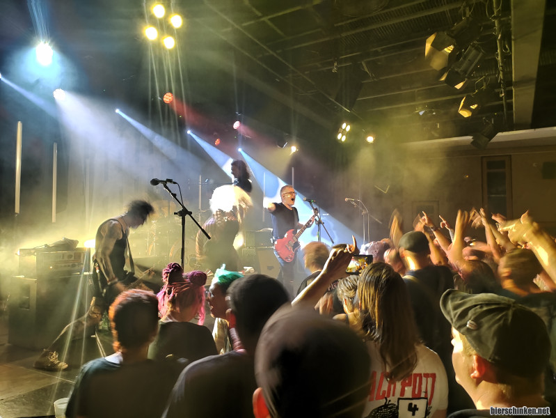 PASCOW beginnen heute mal mit dem Song über Trabbis, äh sorry, Trabanten gefolgt von Rattenlöcher und mehr oder weniger krytische Songs. Ein Mila-Double-Feature ist dabei, wir hören ob ein Möter die Wüste durchkämmt und nach der Merz-Jugend taucht dann eine Überraschung auf und es heißt "Fickt die Elite"! Im Nachhinein weiß ich auch, was da so Komisches auf dem Merchtisch rumstand. Ansonsten weiß ich nicht, ob es noch größere Überraschungen im Set gab, zumindest waren mir alle bestimmt 25 Titel geläufig. Mein Bruder bemängelte, dass der Kosmonautendress fehlte. Nuja. Dafür ist heute wieder Unterstützung von Clara dabei, die auch noch "Wunderkind" zelebriert und bis auf Ollo scheint das männliche Geschlecht jeweils einmal zu verkacken, was irgendwie süß ist.