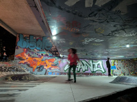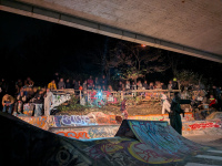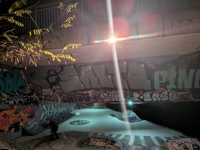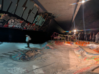 Dann verschwimmt bei mir der Rest des Abends aus, Bier trinken, mit alten und neuen Gesichtern quatschen und dem Treiben auf dem Skatepark zu gucken. Skateschubsen wird gespielt mit Feuerwerk auf der Bahn, zu gewinnen gibt es eine Axt aus Holz aus alten Decks, fett.