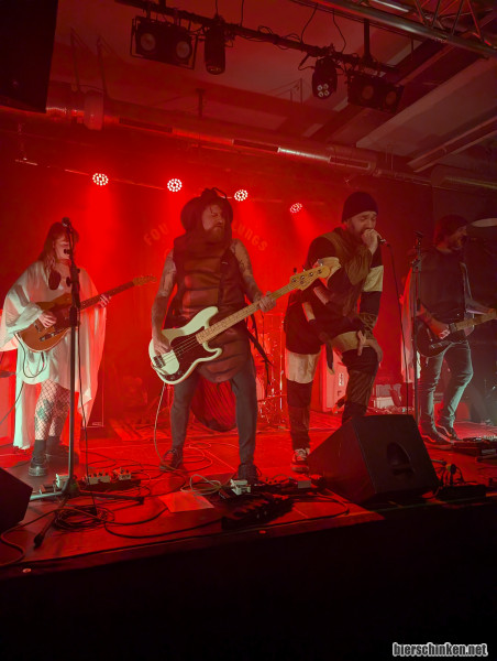 Los geht es mit den FOUR BLACK LUNGS in verschiedener Kostümierung. Die Spinne namens Ameis verliert zwar mit zunehmender Spielzeit ihre Extremitäten, brilliert dafür mit besonders gutem Gesang und fliegt aus Spielfreude immer wieder fast von der Bühne. Leider kann Ulm im Dämmerschlaf diese (noch) nicht erwiedern. Nervous But Ok! Die anderen Vier produzieren ebenso einen astreinen Sound und haben das Glück, von der einzig gelungenen Abmischung des Abends gesegnet zu sein. Ihr Set runden die Menzingers aus München mit einem Cover von I Don’t Wanna Be an Asshole Anymore passend ab.