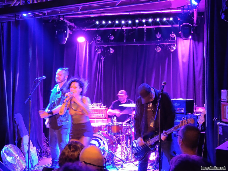 Die Musik ist schnell und der Drummer knüppelt erbarmungslos auf das Schlagzeug ein. Stimme neben mir: "Na, ob der das heute noch kaputt kriegt?". Für meinen Geschmack gab's etwas zu viele Aufforderungen, die Mittelfinger gegen alles Mögliche zu zeigen. Aber im Großen und Ganzen wars sehr schön.