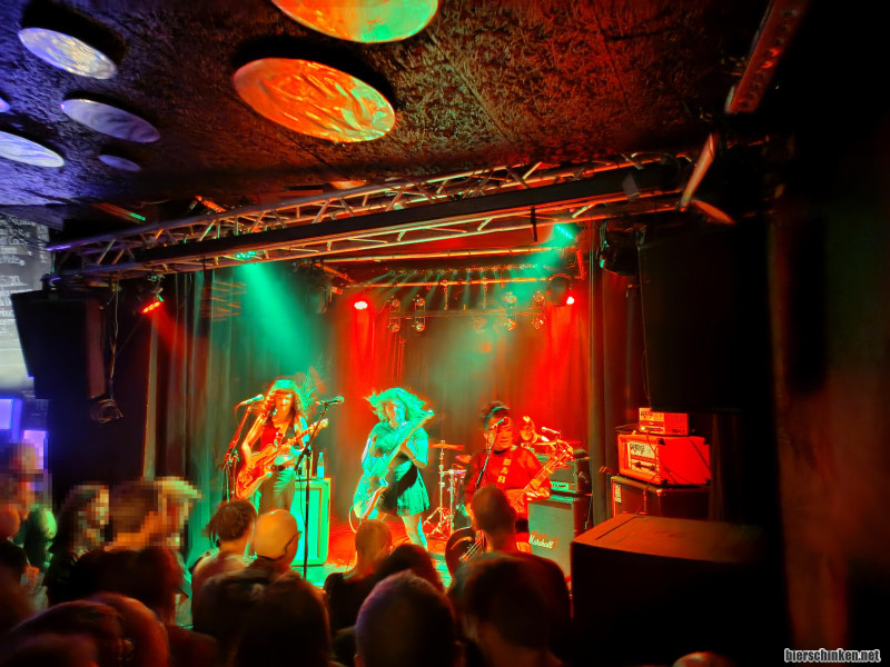 Schön die Band in so einem kleinen Rahmen zu sehen. Allerdings bemängelt Bassistin Linh, dass die Bühne zu klein ist zum dancen. Fällt sie doch sonst immer durch ihre übermenschliche Bewegungsenergie auf.