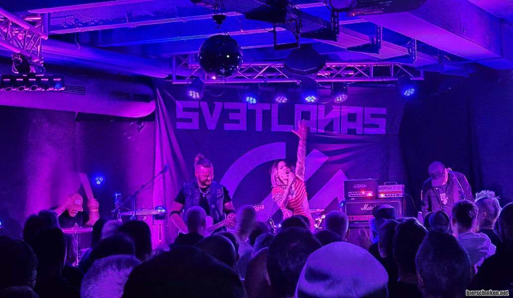 Als wir reinkommen, spielen SVETLANAS schon ein Weilchen. Ich muss ja gestehen, dass es ich die neuen Songs, die heute gespielt werden überhaupt nicht kenne. So bin ich irgendwann nach dem 'Naked Horse Rider', was für mich auch den musikalischen Höhepunkt der Russo-Italos darstellt, ausgestiegen. Die Band hatte sich dann für mich einfach zu sehr vom gradlinigen HC distanziert und machte dann eher so klassischen Punkrock/Rock'n'Roll, was die Musik für mich dann auch ein wenig beliebig gemacht hat.