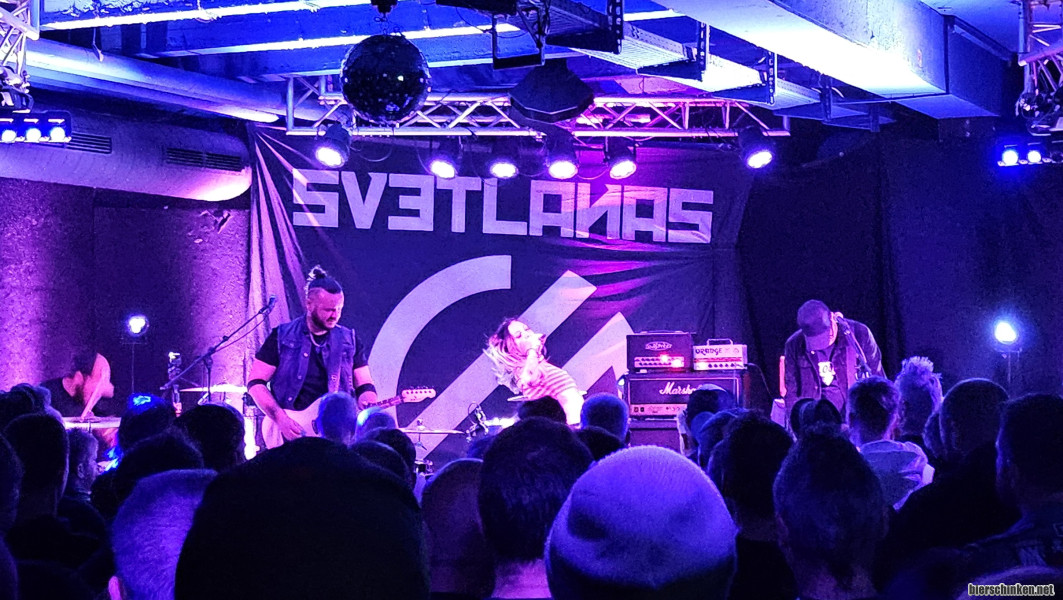 Auftritt ist aber gut. Olga bringt ihre gewohnten energischen Aerobik-Nummern und auch der Rest der Band gibt ganz gut Futter. Wenn mir jetzt noch die neuen Songs mehr zusagen würden, wäre auch alles fein, aber so tuckert der Auftritt im Normal-Bereich umher. Andererseits sind die Svetalanas ja auch erst die Vorband von daher: völlig okay.