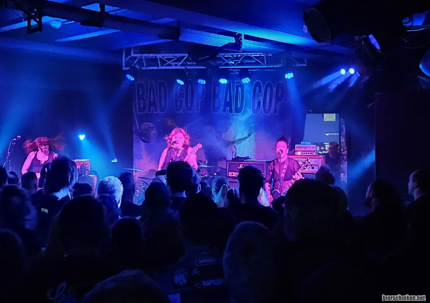 Weiter geht's mit BAD COP / BAD COP. Erwähnte ich eigentlich, dass der Laden richtig gut gefüllt ist? Naja, ihr seht's ja selbst. Übrigens meinte unser Drummer auf der letzten Probe, dass er die Band nie kennengelernt hätte, wenn sie nicht bei Fat Mike auf der Gartenparty gespielt hätten. Ich weiß tatsächlich gar nicht mehr, woher ich die Band kenne. Wahrscheinlich entweder aufgrund einer Youtube-Empfehlung oder weil ich geschaut habe, was Stacey Dee heute so macht. Ich bin jedenfalls sehr froh darüber, weil Bad Cop / Bad Cop heute ganz easy in meinen Top 20 aller Bands immer stehen. Einfach ein absolut rundes Projekt und auch heute enttäuschen sie natürlich nicht.