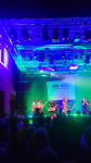 Hier nochmal die ganze Gruppe. So viele Menschen auf der Bühne. Da brauchste Weitwinkel bei diesem rumgeskanke. Das Niwo leistet sich nicht nur diverse Bläser-Menschen sondern auch gleich mal zwei Sänger.
