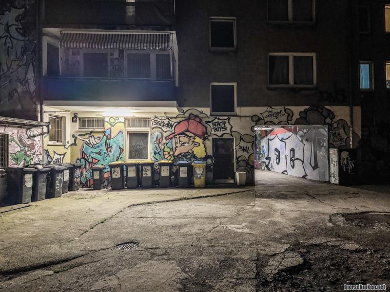 Dr_Lü-Ken_moderiert: Die Menschen aus der Adlerstraße bedanken sich auf ihre Weise und verabschieden sich mit einem Grillfeuer aus einer der zahllosen Garagen. Die Rauchzeichen weisen den Bands auch noch am nächsten Tag den Weg aus der Stadt.