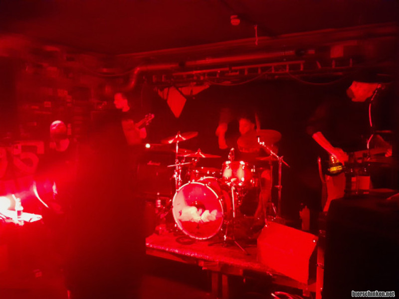 Dann springt der Kapuzenmann hier vorne links im Bild dazu und schreit nochmal doller als der vorher singende Gitarrist. Im Verlauf nutzen auch hier alle mal das Mikrofon. Die Darbietung geht gut rein. Für mich funktioniert das sogar richtig gut. Lange nicht gehört, aber doch irgendwie vermisst diese Musik, die mich an Bands wie Not Now Not Ever erinnert, nur etwas härter und dichter.