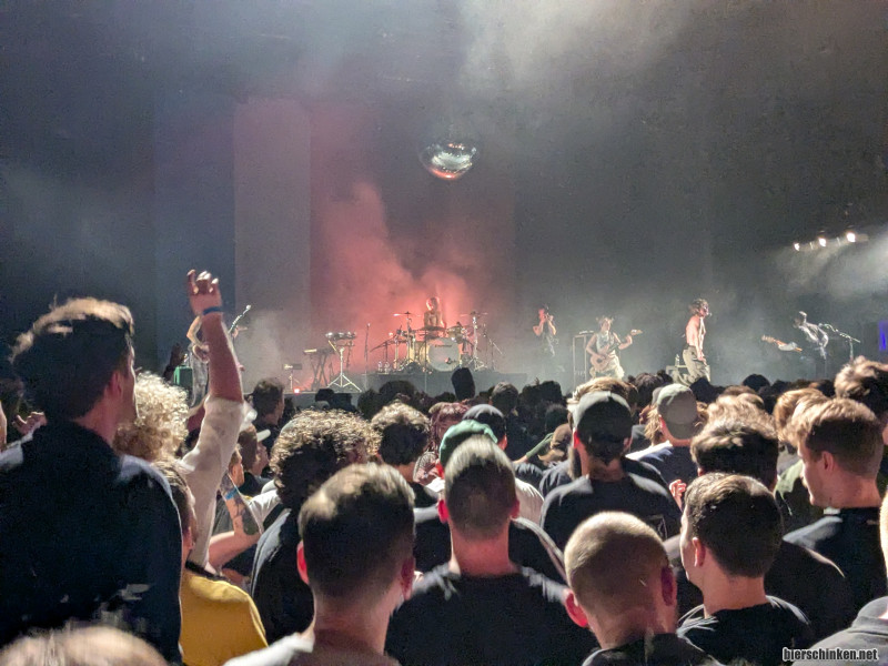 Oberbüscher: Anders als auf diesem Bild gestaltet sich die Crowd heute sehr divers. All ages, all gender, all everything. Das ist wohl die Magie von Turnstile, dass die wirklich jeden an den Tisch kriegen. Leider entdecke ich zwischen der ganzen Farbenfreude auch wieder ein neongelbes Rammstein-Kreuz. Der hat echt wirklich gar nichts gecheckt...