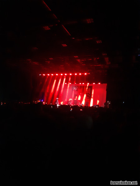 Fö: Meine Sicht sieht also ungefähr so aus (danke an die anderen Schreibenden für die besseren Fotos) und da ich so spontan auch meine Kamera nicht dabei hatte, lässt sich das auch nicht durch Superzoom regeln. Stehe ich hier also rum zwischen Menschen, die beim Konzert Schach aufm Handy spielen (kein Scherz!), sich erzählen welche Bands sie schon in kleinen Venues gesehen haben (I feel you) und darüber lästern, wie langweilig die Band ist.