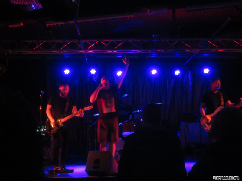 Fö: Highlight der Assoziationskette aber, als Helen bei einem Song auf die Scorpions als vermuteten Einfluss kommt und mir erstmal die Melodie von "Wind of Change" ins Ohr pfeift. Der Song endete, jetzt haltet euch fest, dann auch tatsächlich mit einer Pfeif-Melodie. Also, von der Band gepfiffen, im Publikum wurde nicht gepfiffen. Außer von Helen.