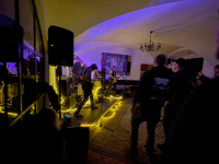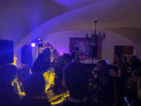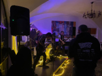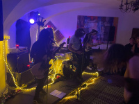 NOISE CHURCH dürfen starten und das Schlosscafé bzw. die Café Bar vom Schloss Aulendorf sieht an diesem Abend seine erste Punkrockshow. HETE geben sich mit der Gestaltung ihrer Plattentaufe sehr viel Mühe. Das Gruft-Klimbim fügt sich hervorragend ins historische Ambiente ein.