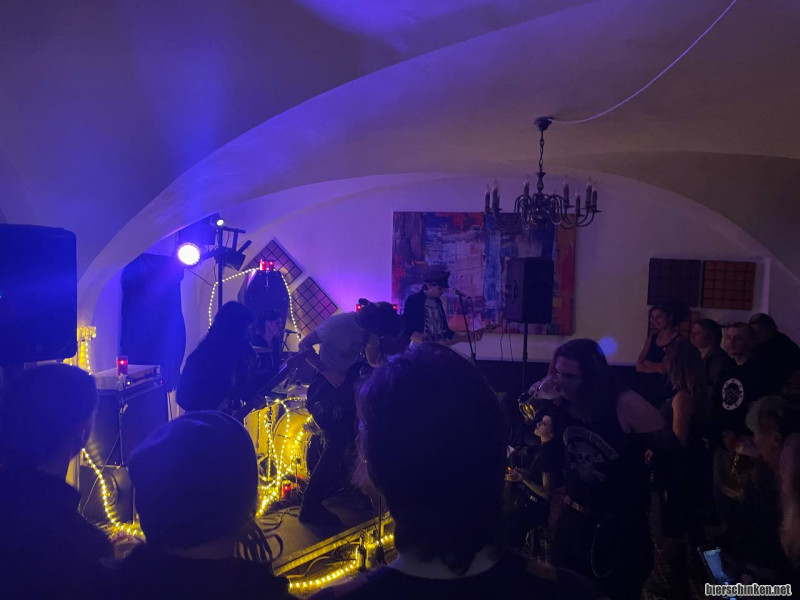Auf die Lieferung der Platte mussten HETE übrigens sehr lange warten, unter einem Insta-Post zur Band vom OX Fanzine kann man einen spannenden Dialog zwischen dem Label und dem Presswerk verfolgen. Leidgeprüfte DIY-Labelmenschen wie ich zucken bem Lesen direkt nervös zusammen. Gottseidank kam das Vinyl noch rechtzeitig an und so konnte locker und gelöst gefeiert werden. Und das wurde es auch, trotz gelegentlichen technischen Ausfällen die die Band nur charmanter wirken ließen.