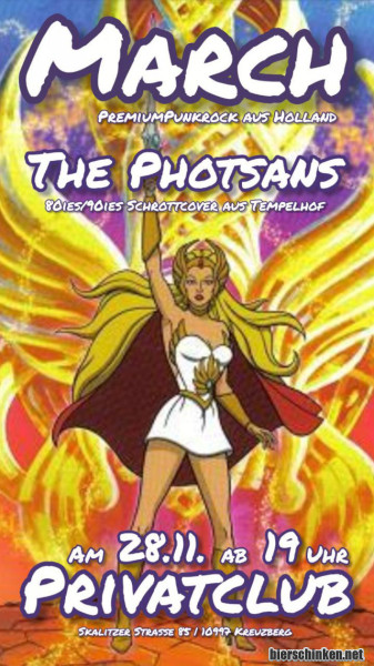 Berlin, Ende November. Die Auswahl groß, die Temperaturen niedrig. MARCH haben mich im letzten Jahr vor CLOWNS mächtig elektrisiert, sodass ich mir diesen Termin früh im Kalender notiert habe. Und wer bekommt bei diesem mächtigen Flyer nicht Lust auf eine geballte Ladung Premium Punkrock? Schnell durch die Kälte zum alten Postamt geflitzt und kurz vor acht im Privatclub angekommen, wundere ich mich über die doch recht übersichtliche Zahl der Anwesenden und die abwartende Stimmung. Zu viel Auswahl für einen Freitagabend?
