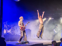Nach längerem Umbau sind schon METZER 58 dran. Sehr schickes beleuchtetes Backdrop, Dauernebel und Partypunk der Extraklasse. Hab ich da neue Songs gehört? Der Betrunkene kommt wieder rein, stolpert kurz durch den Pogo, fliegt wieder auf die Fresse und zieht sich ne Platzwunde im Gesicht zu. Nach zwei Minuten geht's für ihn wieder raus, wo er erneut verarztet wird.