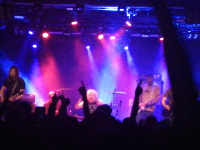 13.11. D-A-D und THE 69 EYES in Köln. Bei den "Helsinki Vampires" besteht die Performance aus 50% Musik und 50% Frisuren. Sympathischer Mix aus Sisters Of Mercy, Type O Negative und Him. Irgendwie. Drei Lieder kenn ich, die andern klingen ähnlich. Der Schlagzeuger ist ein bisschen unterfordert und hat Zeit für große Gesten und Faxen bei wirklich jedem Lied. Nett insgesamt und es riecht nach Patchouli im fledermäusigen Publikum. Der Herr neben mir riecht allerdings eher nach Vergessen und kann sich auch nur mit Mühe an der Wand festhalten. Pünktlich zur zweiten Band des Abends, den von mir überaus geschätzten D-A-D aus D-Ä-Nemark treffen dann auch meine Begleiter ein. Die Dänen um die Binzer-Bros feiern ihr 40jähriges Jubiläum und ich finde sie sogar noch besser in Form als letztes Jahr in Oberhausen. Unfassbar sympathisch, jede Note mit Liebe vorgetragen und dabei gleichzeitig hart, weich, authentisch und trotzdem stets auf Profiniveau. Ich bin Fan und beseelt. Songs aus allen Schaffensphasen fügen sich nahtlos zusammen und es wird auch viel gelacht. D-A-D haben es über die Jahre geschafft, unverwechselbar zu werden. Netter Kontakt, gerne wieder.