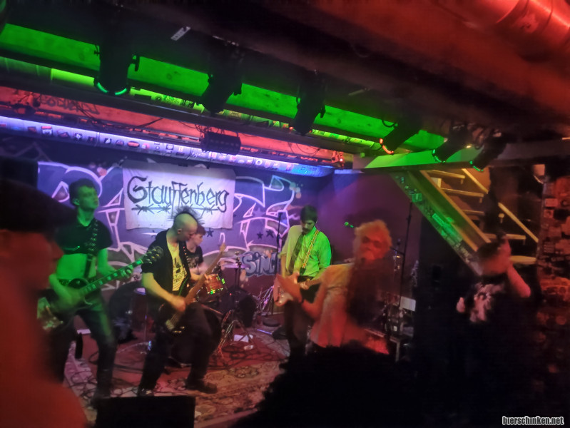 verSemmelt: 01.11. STAUFFENBERG, HABGIER, BOOGIE TRASH und FUZ in Görlitz. Heut wird man sogar persönlich noch eingeladen, damit wenigstens ein paar Leute sich im Basta einfinden, da anscheinend sich eine Reihe von Menschleins sich zu Halloween aus dem normalen Tagesablauf geschossen haben. Ich komme zu FUZ aus Bremen (erster Auftritt), die sich so in Richtung Kotzreiz orientieren. Paar Offbeatsongs sind dabei und wegen des katholischen Feiertags gibt es passend einen Mitsingsong namens Sodo-Miiieee. BOOGIE TRASH aus Berlin fallen heute etwas aus dem Rahmen mit sehr ordentlichen Rockabilly, RocknRoll und Psychobilly. Schöne dreckige Stimme plus Kontrabass. Paar Songs weniger wäre perfekt gewesen. HABGIER erst zu zweit mit kurzen knackigen Songs, zweite Hälfte ist mir persönlich lieber gewesen. Nur an den doch immerzu langen Pausen wegen der eingespielten Schlagzeugsounds sollte man schleunigst arbeiten. Da hört man ja die Stecknadel fallen. STAUFFENBERG (im Bild) holen dann nochmal alles aus den vorhandenen Leuten. Da ist einfach alles Punk bis zur Voll auf die Fresse Provokation. "Hände hoch wer wie wir alles AfD gewählt hat."