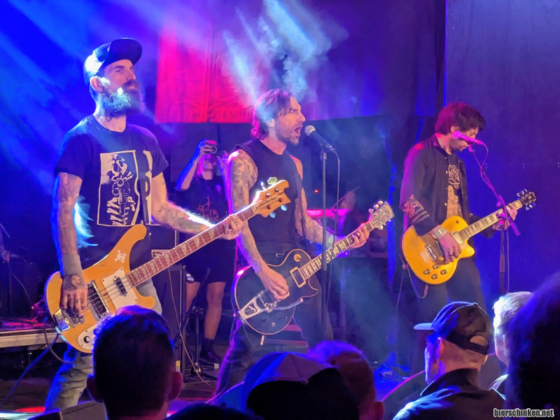 Chris Crusoe: 15.11. Helldorado Festival in Eindhoven. Zuletzt habe ich diese Veranstaltung vor sieben Jahren besucht. Dieses Jahr verspricht das Line-Up wieder einen prall gefüllte Tag voller Abwechslung. Und ich erahne ebenfalls vorab, dass es ein genussmittelintensiver Tag werden könnte. Und so soll es auch kommen. Um 10:30 auf der Hinfahrt öffnet sich das erste Bier. Und so weiter. Nach Anreise, Ankunft und weiteren Getränken erleben wir MODDER (gut!) und REACH. BILDSTAR machen klassischen Heavy Metal und das auf hohem Niveau. MANTAR und ASPHYX ballern erhaben und machen Spaß. STONED JESUS und UNCLE ACID machen ebenfalls Spaß, wobei mich die schnelleren Stücke eher abholen. Die TURBO A.C.s und PETER PAN SPEEDROCK machen wie immer alles richtig und gefallen mir heute beide sehr gut. LIFE OF AGONY fühlen sich gut an und ich bin nostalgisch ergriffen. Leider improvisiert Keith wie schon so oft mit den Melodien und singt zwar engagiert, aber schwer nachvollziehbar. Sehr schade! Ebenfalls schade ist der Auftritt von TURBONEGRO. Mäßiger Sound, mäßiges Engagement. Da liegt die Messlatte hoch und wird deutlich unterschritten. In Köln am Folgetag sollen sie super gewesen sein, aber aufgrund der eingangs erwähnten Biere und weil die Bahnstrecke gesperrt ist spare ich mir das. HATEBREED erlebe ich noch am Rande, aber da treffen sich Müdigkeit, Alkohol und mittleres Interesse. Ich mag einige ihrer Lieder, aber so langsam ist auch für mich die sechste Stunde. Insgesamt ein sehr gut organisiertes Festival, bei dem sich zwar viel auf einen Tag und drei Bühnen konzentriert, aber das ist in Summe auch genau richtig so!