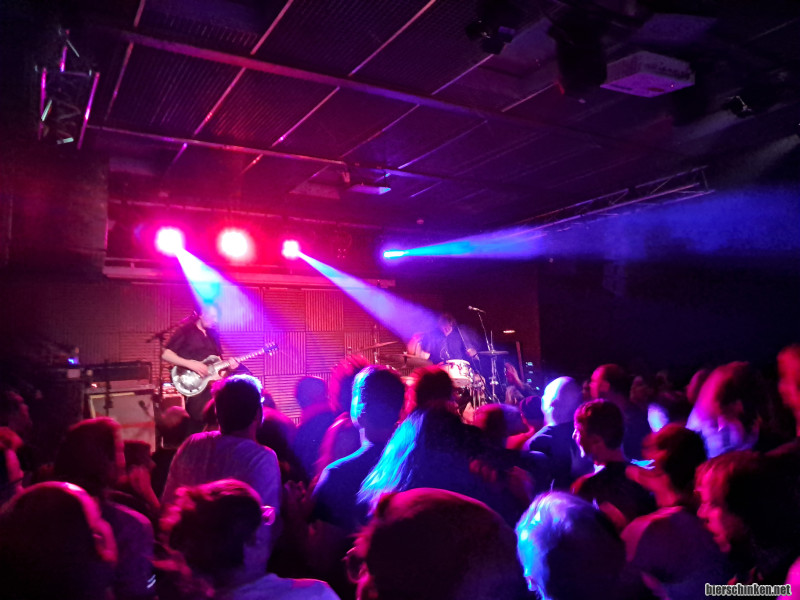 Stellt sich heraus, dass 2 Typen auf der Bühne stehen, Bretter bestehend aus Stoner, Hardcore und Punk hinlegen und zwischendurch höchst sympathisch mit dem offensichtlich sehr treuen Publikum interagieren. Stark fand ich auch die regelmäßigen Hinweise darauf, dass wir die Demokratie verteidigen müssen (Faust hoch) und auch die Versteigerung von Mauerstück-Unikaten mit DŸSE-CD, für die vor Ort bis zu 550 Euro gegeben werden. Der Erlös geht an Polylux und Kein Bock auf Nazis, denen während des Konzerts die Bühne gegeben wird.