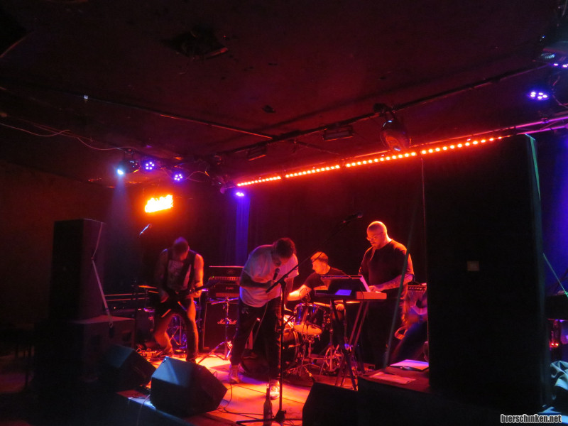 Es beginnt ziemlich pünktlich um 20:00 Uhr. Vorher verschanzt sich noch das Organisationsteam hinter einer hölzernen Wand, die wohl zur Abwehr von Zombies gedacht ist.
