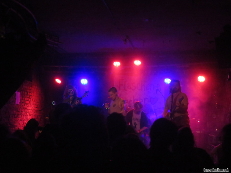 Fö: Ob der Mensch, der auf der Bühne sitzt und Bandbier säuft, auch Teil der Band ist, weiß ich nicht, eventuell haben wir einführende Erläuterungen dazu verpasst. Da Teile von Flaschenbecher dafür bekannt sind, Bands die Getränke zu klauen, sehe ich aber Parallelen.