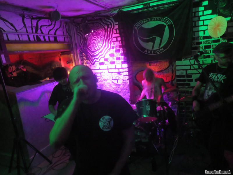 Ist ne sehr astreine Mischung aus diesem Cold Oi (was ja auch wieder nur ne Mischung ist aus Wave und Oi) und Hardcore-Punk (was ja irgendwie auch ne Mischung ist), und die Kombination kommt sehr gut. Mal wird gebrettert, mal gibt's die schöne flächig-hallige Gitarre, und darüber wird geblökt gegen dies und das. Zum Beispiel gegen Polizeigewalt, was aktuell (und eigentlich eh immer) ja auch wichtig ist.
