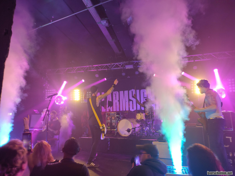 ALARMSIGNAL heute mal wieder mit Krankheits(aus)fällen an den Gitarren. Schon letztes Mal in Hannover hat Louis Bulli vertreten, diesmal vertritt er Tom. Bulli schleppt sich trotzdem mit Fieber auf die Bühne kann sich aber immerhin zwischendurch hin setzen.