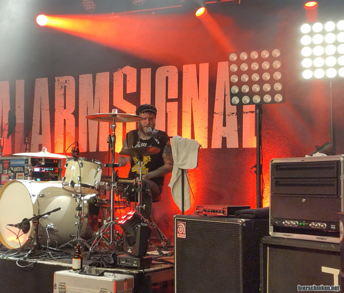Chris Kotze von Kotzreiz und Jennifer Rostock spielt seit kurzem bei Alarmsignal und singt auch "Deutsch mich nicht voll". Zusätzlich wird noch "Punk ist Punk" von Kotzreiz gecovert, sehr gute Wahl!