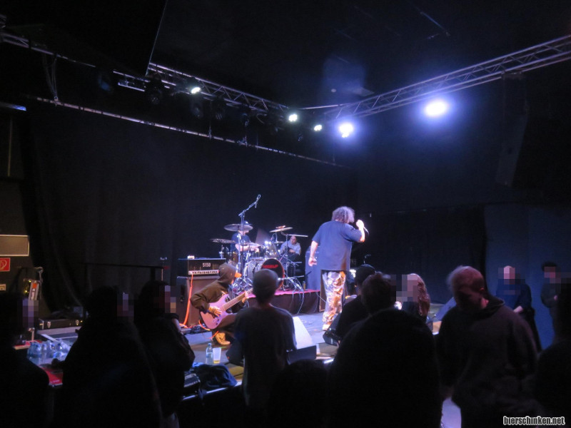 Björn: Weiter geht's in der kleinen Halle ("Club") mit 3SHOTZ. Die sind tatsächlich nur zu dritt, Schlagzeug, Vocals und eine Gitarre mit überdurchschnittlich vielen Saiten.