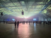 Nachdem die Reisegruppe auf völlig unterschiedlichen Wegen angereist ist, hat das Treffen vor der Halle (und die Kartenübergabe) ziemlich gut geklappt. Die Maimarkthalle ist wirklich riesig. Ich spaße, dass nach der „Irieunion“ wohl wieder ein Airbus A380 darin gewartet werden wird. Die Situation an den Getränkeständen ist ziemlich entspannt und man bekommt gut Nachschub, aber die Toilettensituation ist echt dramatisch schlecht und für 12.000 Menschen eine völlige Fehlplanung. Wer plant so etwas bzw. wer vergisst, so etwas einzuplanen?