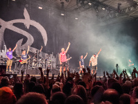 Mal Élevé streut noch ein paar Songs aus seinem Soloprogramm ein. „No pasaran“ haut auch richtig gut rein! Die Energie in der Halle ist schon ziemlich unglaublich. Während es mich anfangs noch fröstelt und ich meine Jacke nicht an der Garderobe abgebe, tropft später der Schweiß von der Decke und ich stehe nur noch im T-Shirt mit einem großen Klamottenbündel in der Hand im Mob vor der Bühne oder ein wenig seitlich davon.