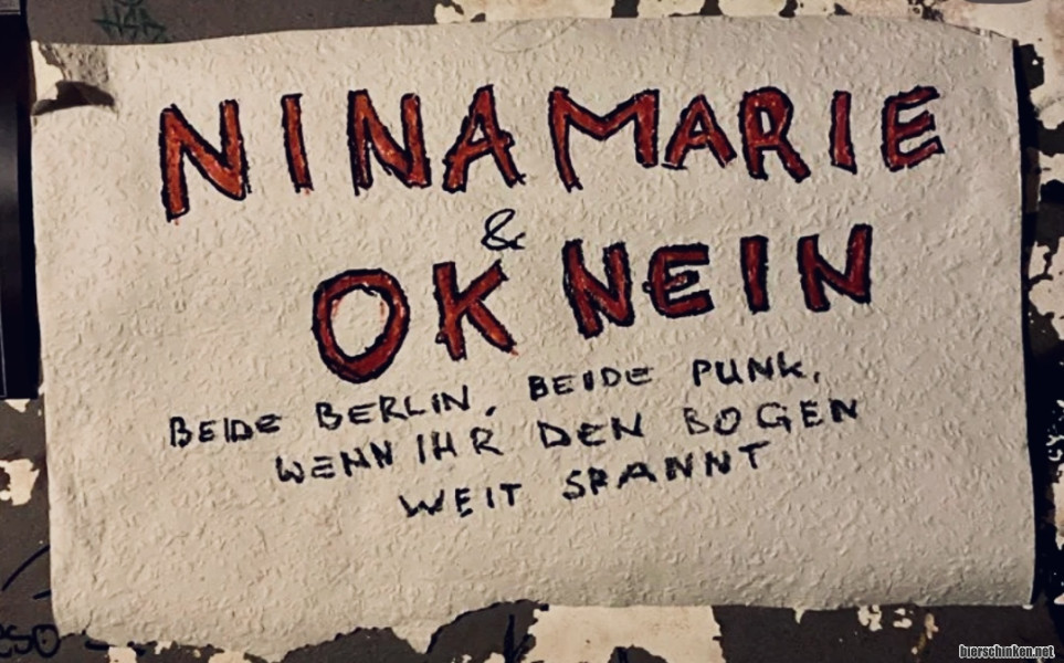 Paula: 13.12. OK NEIN + NINA MARIE, Kachel Potsdam. Zur Feier des Tages sammeln mich meine Freunde mit dem Bus ein und nehmen mich einfach mit zu diesem Konzert. Ich hänge noch ordentlich durch, schaffe es aber zum vereinbarten Treffpunkt. Auf der Fahrt nach Potsdam kann man ja auch noch mal etwas die Augen zu machen und entspannen. Die Kachel (mit Ofen!) ist ein wahnsinnig gemütlicher Laden, fühle mich an der Bar direkt wohl. Nach dem ersten Bier dann aber doch etwas körperliche Verfallserscheinungen. Gut, dass ich noch Zeit und Gelegenheit habe, mich in den Bandrückzugsräumen kurz mal abzulegen. Nach Schönheitsschlaf, bestem Essen und Gesprächen dabei geht es dann auch so langsam los. Passend zu meiner körperlicher Verfassung wird es bei Nina Marie erstmal etwas ruhiger. Eine Band, die ich seit gefühlten 20 Jahren kenne - Marten von Turbostaat, Es war Mord und Thomas von den Beatsteaks haben sich hier vor etlicher Zeit schließlich zum gemeinsamen Musizieren zusammengefunden - aber die mittlerweile mit Sophie (ehemalige Drummerin bei Shoshin, mittlerweile auch bei DKSBE!) und Julius von BSI am Bass auch als Band auf Tour gehen. Spannend sind die Wechsel von Thomas und Sophie am Schlagzeug, der jeweils andere übernimmt an E-Piano oder zweiter Gitarre. Das macht alles sehr Spaß. Im Anschluss dann etwas lauter und der volle Raum tanzt. Die Dunkelheit lässt Reena etwas verzweifeln und Oscar hat zuletzt kurzzeitige, aber doch recht elegant gelöste Kabelprobleme, aber der ganze wohlig warme Raum tanzt bis zum Ende (und gibt auch bis nach dargebotener Zugabe keine Ruhe). Ich freue mich, die tollen neuen Songs, die ich bis gestern noch nicht kannte, einen zweiten Abend in Folge zu hören und den Abend noch entspannt am Merch mit tollen Freunden ausklingen zu lassen. Wie kann man ein Geburtstagswochenende besser verbringen?