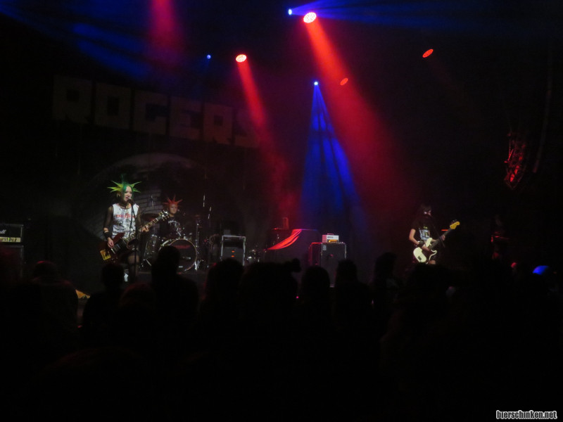 Rumkicks (oder Rumsticks, wie sie später noch genannt werden...) jedenfalls gefallen mir nicht nur in den Ansagen, auch musikalisch hat das Hand und Fuß und Ecken und Kanten, ist aber auch eingängig und mitreißend. Mal hat es was von Ramones, mal fühle ich mich an Snuff erinnert oder an so manchen neueren Fat-Wreck-Kram à la Bombpops oder Bad Cop / Bad Cop.