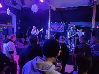 Heut ist auch Spendenabend fürs JUZ mit dem neuen (Rettungs-)Träger "logo lausitz". Mit neu verlegtem Fußboden (der alte hatte Geschichten zu erzählen - und war auch nach 3 mal wischen immerzu klebrig), einer etwas spärlichen Getränkekarte á la Bier oder Limo sowie frisch gestrichenen Wänden geht´s in eine neue Zeitrechnung. Bei Bier hatte man aber zumindest die Qual der Wahl. Jever Light alta. Dann beginnen TRINKFEST aus Rietschen mit sozialkritischen Texten und mindestens einem über Sternburg. Früher wurde da gefühlt nur Schleim-Keim gecovert. Jetzt kommt da ein bestimmt 45 Minuten Set an eigenen Titeln. Der neue Gitarrist kann was, am Schlagzeug wirkt man fast etwas unterfordert, fehlt eigentlich noch ein Bass um den nächsten Schritt zu machen. Trotz übelster Festbeleuchtung gibt´s zum Schluss etwas Geschubse.