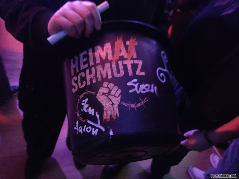 Merch sind Eimer aus dem Baumarkt. Habe ich so auch noch nicht gesehen. Auch schön, dass sich eine durchaus ordentliche Anzahl an durchgemischten Publikums raus in die Kälte getraut hat um auf Konzi zu gehen. Einige Gesichter habe ich seit Ewigkeiten nicht mehr gesehen.